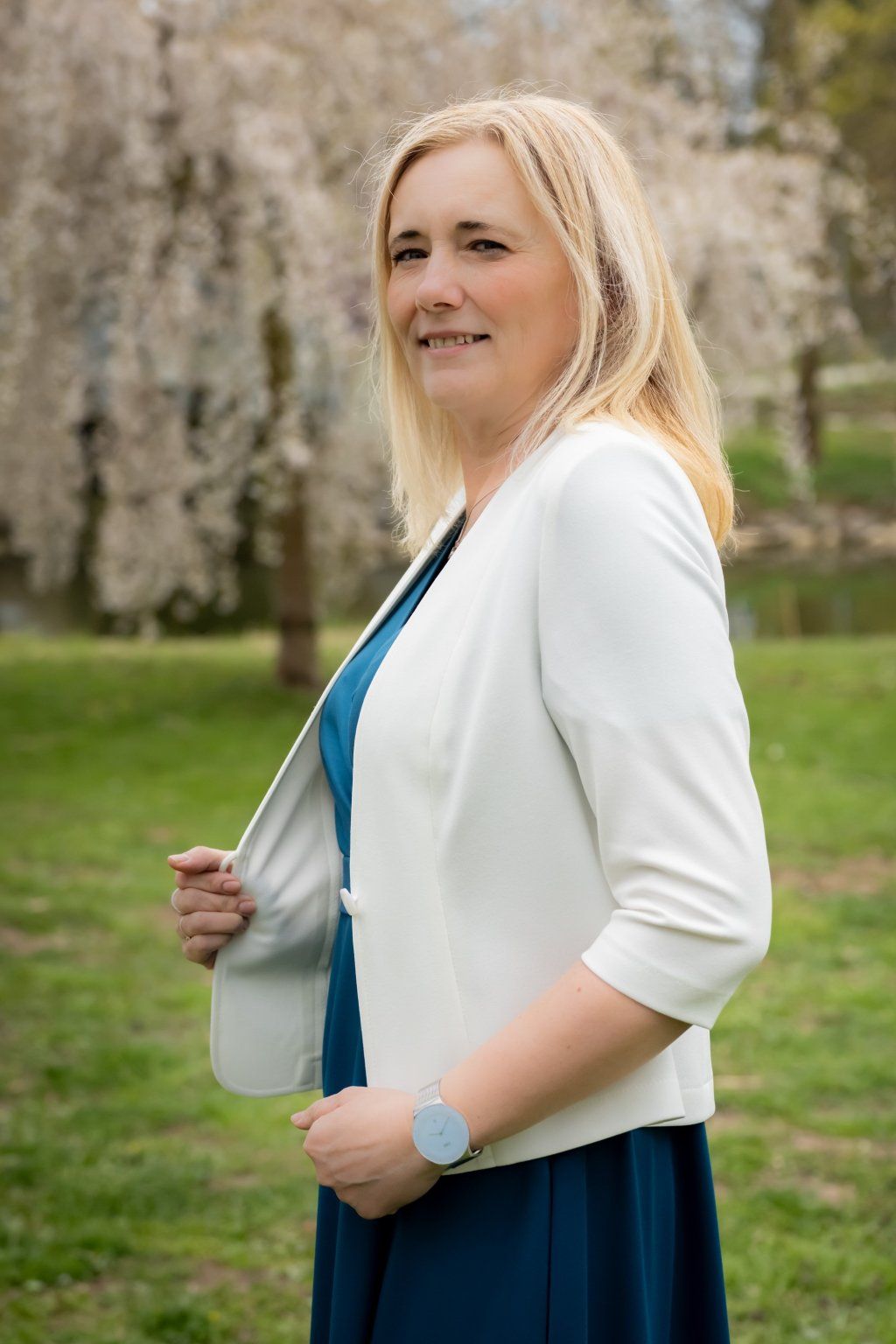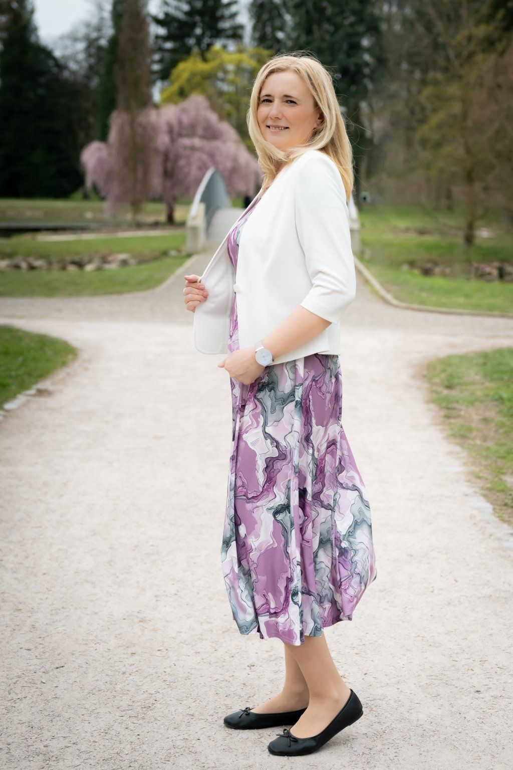 Dodejte svému outfitu šmrnc s tímto smetanovým kabátkem na šaty, který vám zajistí pocit upravenosti po celý den.