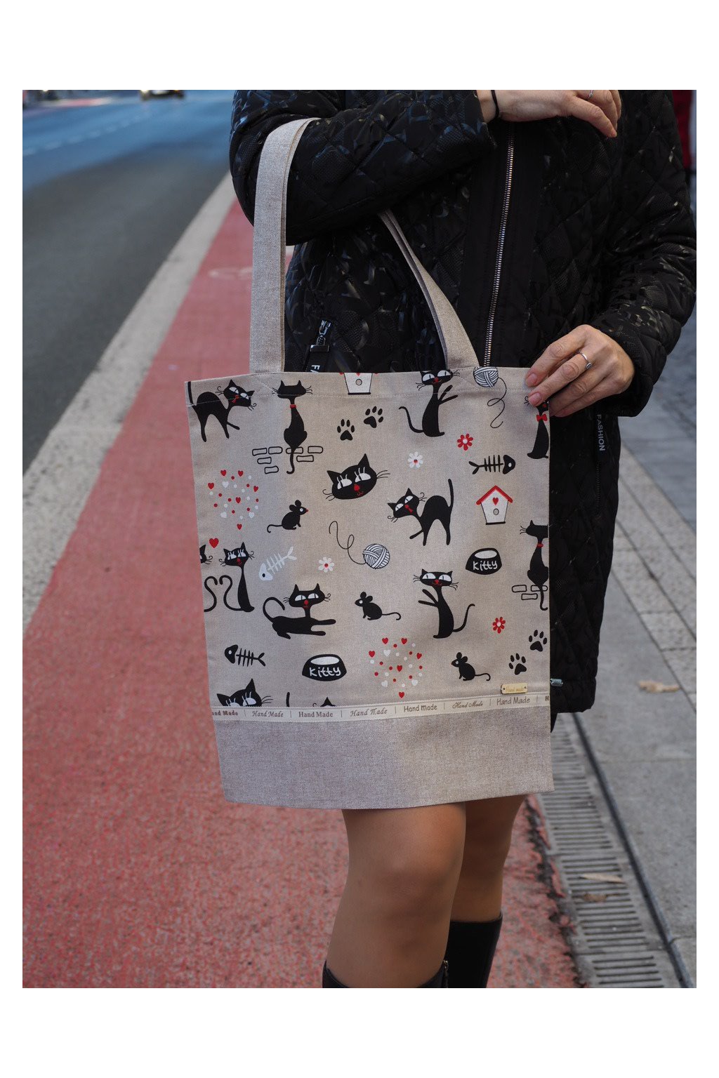 Originální látková taška z hrubší dekorační látky se vzorem "Kočky"