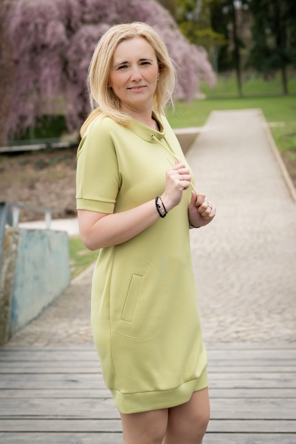 Sportovně elegantní šaty z velmi příjemného materiálu. Šaty mají volný stojáček a lištové kapsy.