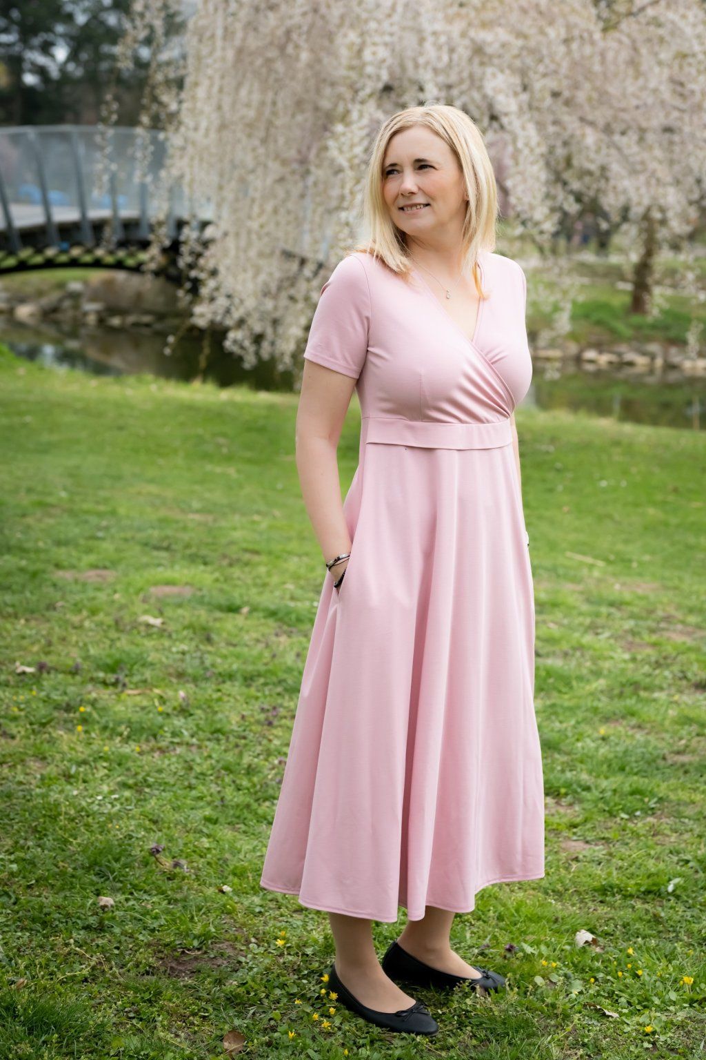 Šaty z velmi lehkého úpletu s viskózou a s kapsami.