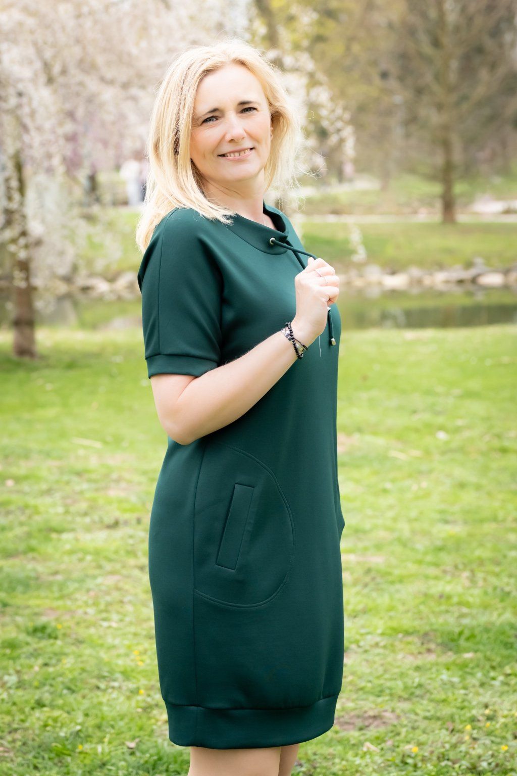 Šaty - Tmavě zelené - Scuba - krátký rukáv