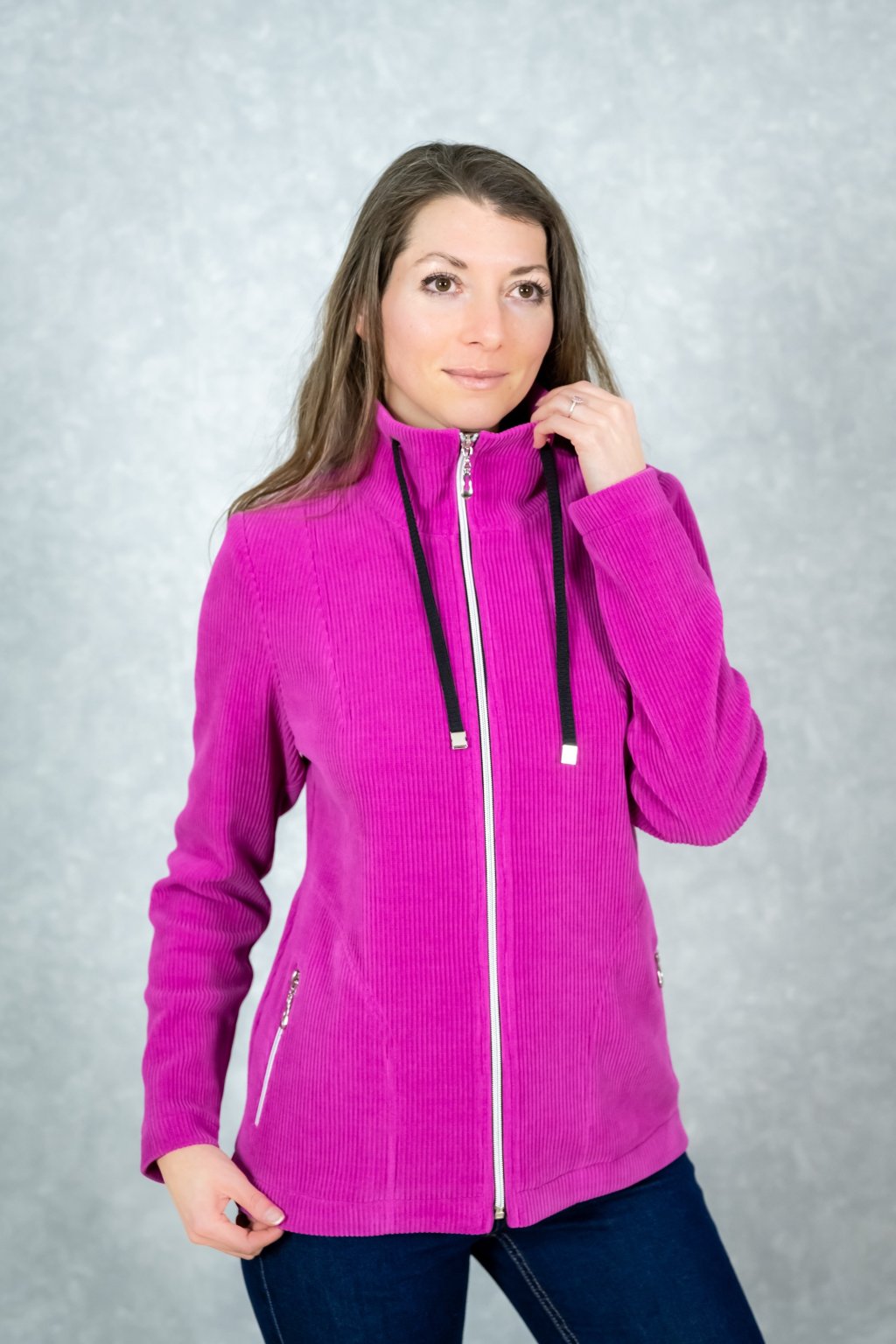 Vneste do svého šatníku novou energii s tímto tmavě růžovým svetrem z příjemného materiálu monte, který si zamilujete pro jeho měkkost a odolnost. Jeho variabilní střih se vám hravě přizpůsobí – v chladnějších dnech vás zahřeje jako stojáček, nebo ho rozepnutím proměníte v elegantní límec. Sportovně-elegantní vzhled pak skvěle doplňují praktické kapsy na zip, díky kterým budete mít své drobnosti vždy v bezpečí.