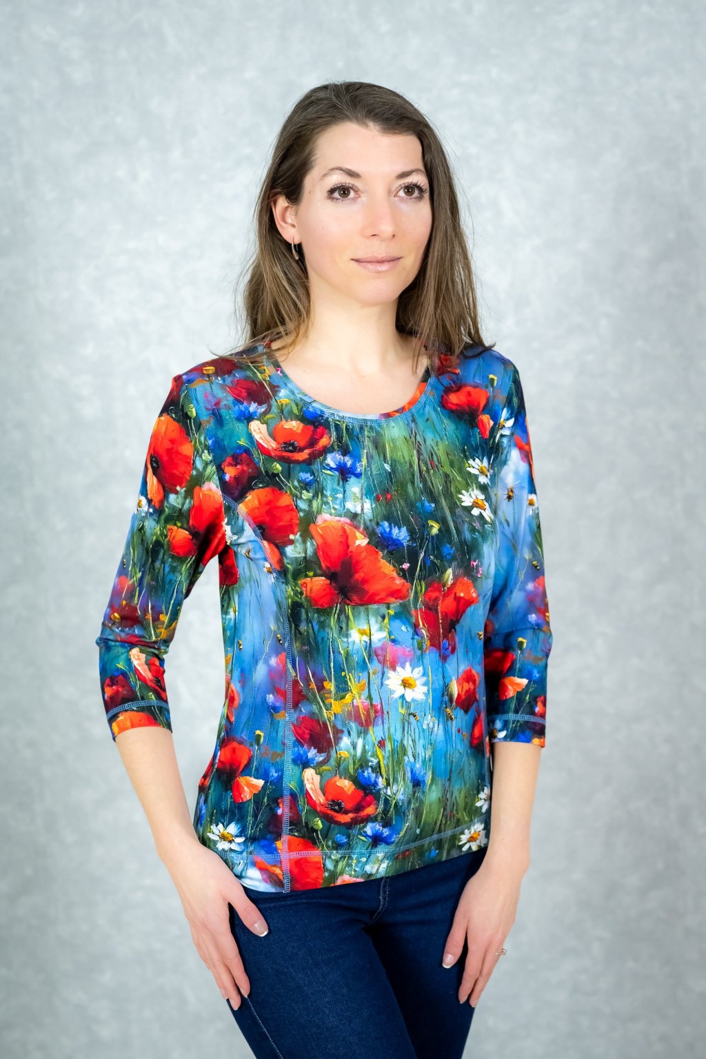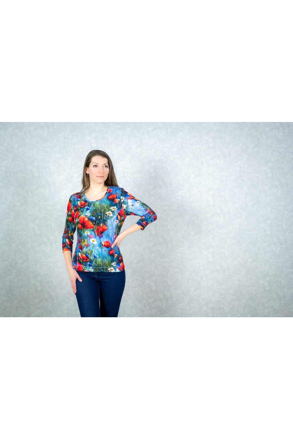 Nechte svůj styl rozkvést s tímto tričkem, kterému vévodí nepřehlédnutelný vzor vlčích máků pro vaši každodenní dávku radosti. Díky sportovně-elegantnímu střihu jej hravě zkombinujete s oblíbenými džínami i sukní, což z něj dělá univerzálního parťáka pro každou příležitost. Tříčtvrteční rukávy a lehký materiál vám navíc zajistí pocit naprosté svobody, takže se v něm budete cítit sebevědomě a v pohodlí od ranní kávy až do večera