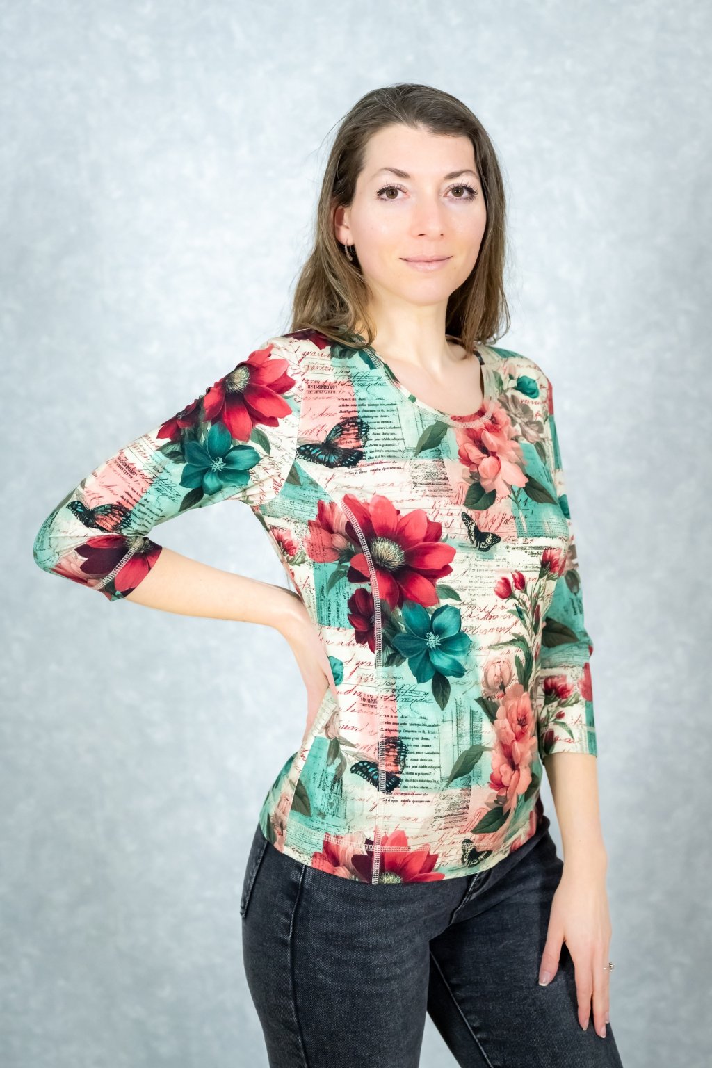 Osvěžte svůj šatník tímto tričkem v originální mátovo-červené kombinaci, která díky něžnému květinovému vzoru okamžitě vdechne vašemu dni novou energii. Jeho sportovně-elegantní střih je navržen tak, aby vás doprovázel při každé příležitosti, ať už ladíte outfit do práce, nebo se chystáte na pohodové odpoledne s přáteli. Příjemný materiál vás zahalí do naprostého pohodlí, ve kterém se budete cítit sebevědomě a svá od rána až do večera.